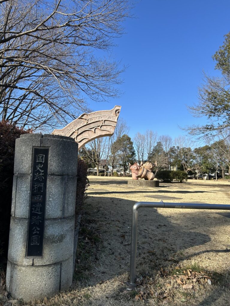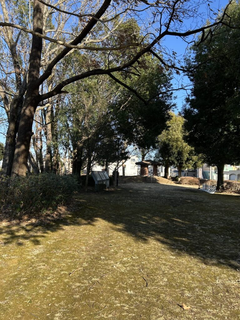 京王高尾線めじろ台駅より徒歩約12分、椚田遺跡公園は縄文時代を感じられる公園。入口に古墳や土器などのオブジェがあり、そこを抜けると広い芝生広場でゆっくり遊べます。遺跡の説明看板等があり、興味のある方には良い勉強になります。遊具は設置されていませんが、お天気の良い日にのんびり過ごすには最適。